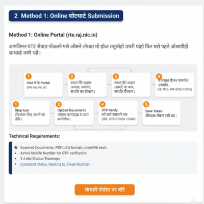 शिक्षा का अधिकार (RTE) अधिनियम के तहत राजस्थान के निजी स्कूलों को आर्थिक रूप से कमजोर वर्ग और वंचित समूहों के बच्चों के लिए 25% सीटें आरक्षित रखनी अनिवार्य हैं। जब अभिभावकों को प्रवेश अस्वीकृति, दस्तावेज़ सत्यापन विफलताओं, या लॉटरी प्रणाली त्रुटियों का सामना करना पड़ता है, तो राजस्थान स्कूल शिक्षा परिषद शिकायत निवारण के लिए तीन आधिकारिक चैनल प्रदान करती है: एक ऑनलाइन पोर्टल,
